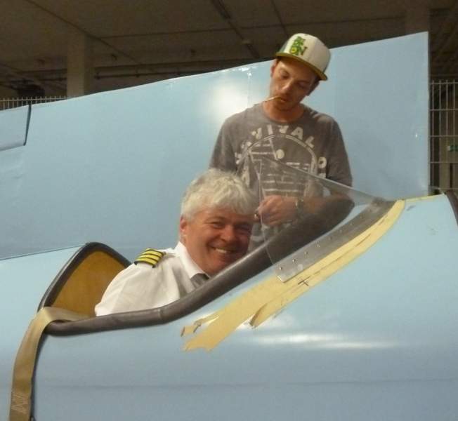 Die Lackierung des Längsstreifens an der Motorhaube ist fertig. Das Flugzeug sieht nun wesentlich eleganter aus.
